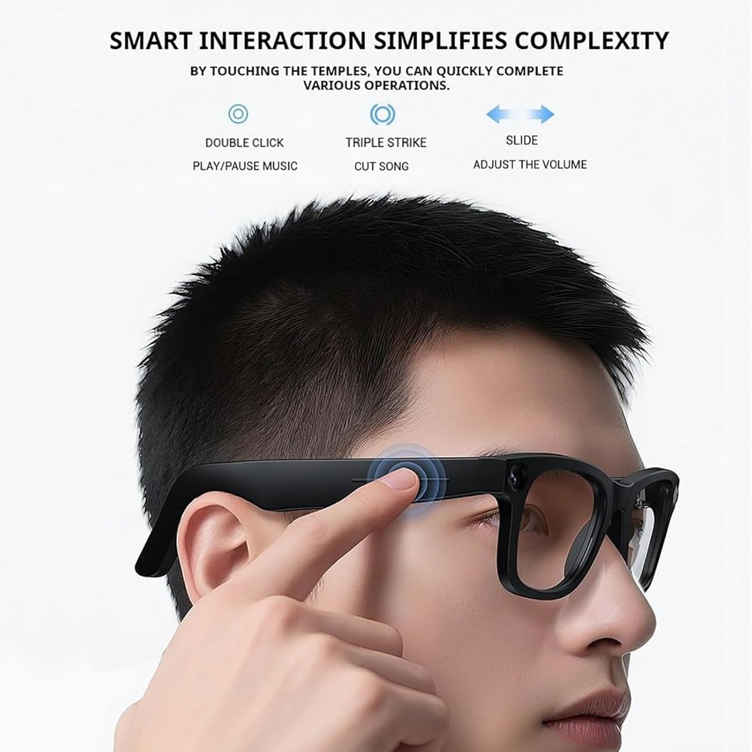 Immersive Audio & Intuitive Controls—Enjoy crystal-clear calls and music via open-ear speakers and a noise-reducing mic. Swipe or tap the frame to adjust volume, pause tracks, skip songs, or answer calls—no phone needed. Designed for seamless, wire-free control during driving, walking, or working