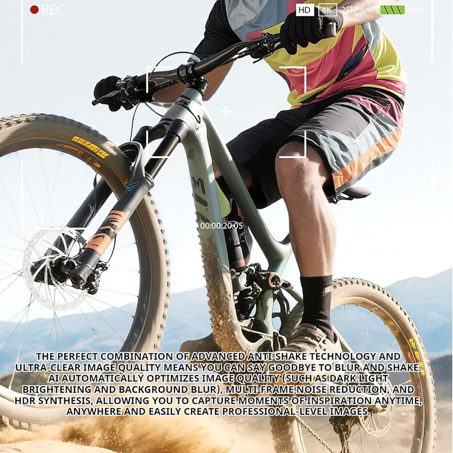 Extended Power & Hassle-Free Storage—Record memories effortlessly with single-button activation. Large 32GB storage and Wireless transfer let you view/share content instantly without cables. The 75-hour standby time supports continuous charging, ensuring uninterrupted use for vlogging, travel, or work